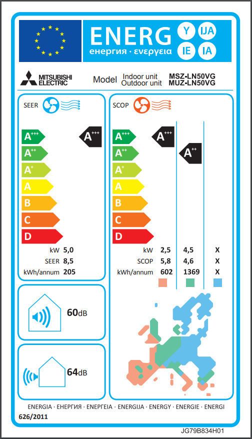 Η βέλτιστη απόδοση ψύξης/θέρμανσης είναι ένα ακόµαχαρακτηριστικό της σειράς LN. Τα μοντέλα 25 έως 50 έχουν επιτύχει την “Κλάση Α+++” στον Εποχιακό Δείκτη Αποδοτικότητας SEER, και τα µοντέλα 25 και 35 έχουν επιτύχει “Κλάση Α+++” και στον Δείκτη SCOP.